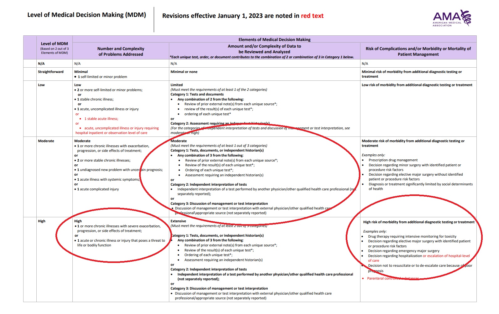 - E/M Leveling: Based on the 2023 MDM guidelines, what level of Emergency Department E/M is supported?